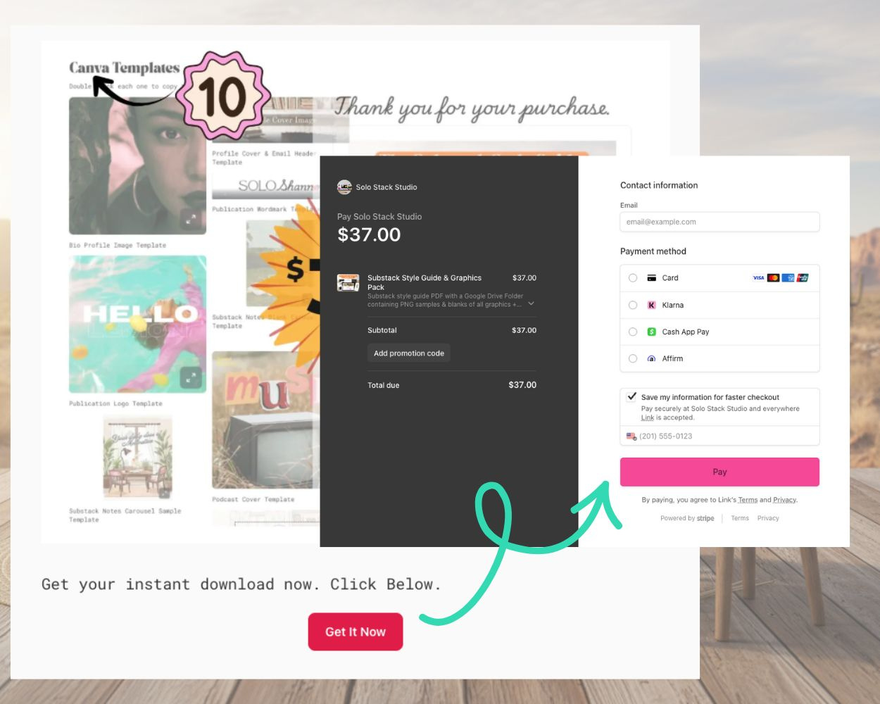 Platforms like Etsy and Gumroad automatically deliver the assets when a customer purchases a digital listing. Substack doesn’t have that capacity, but Stripe does. I did a mini-tutorial earlier this year on how to use Stripe to sell products and services here on Substack.