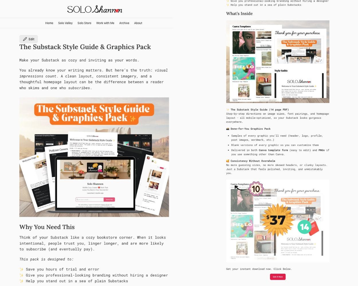Fill in the page the same way you create a post. Use mockup graphics to show instead of tell. Make this visually appealing and keep your pitch tight to why they need it & how it solves that exact pain point. You can check out my Substack digital product sales page to see how it all flows together. You don’t need a mile long sales letter, keep it simple.