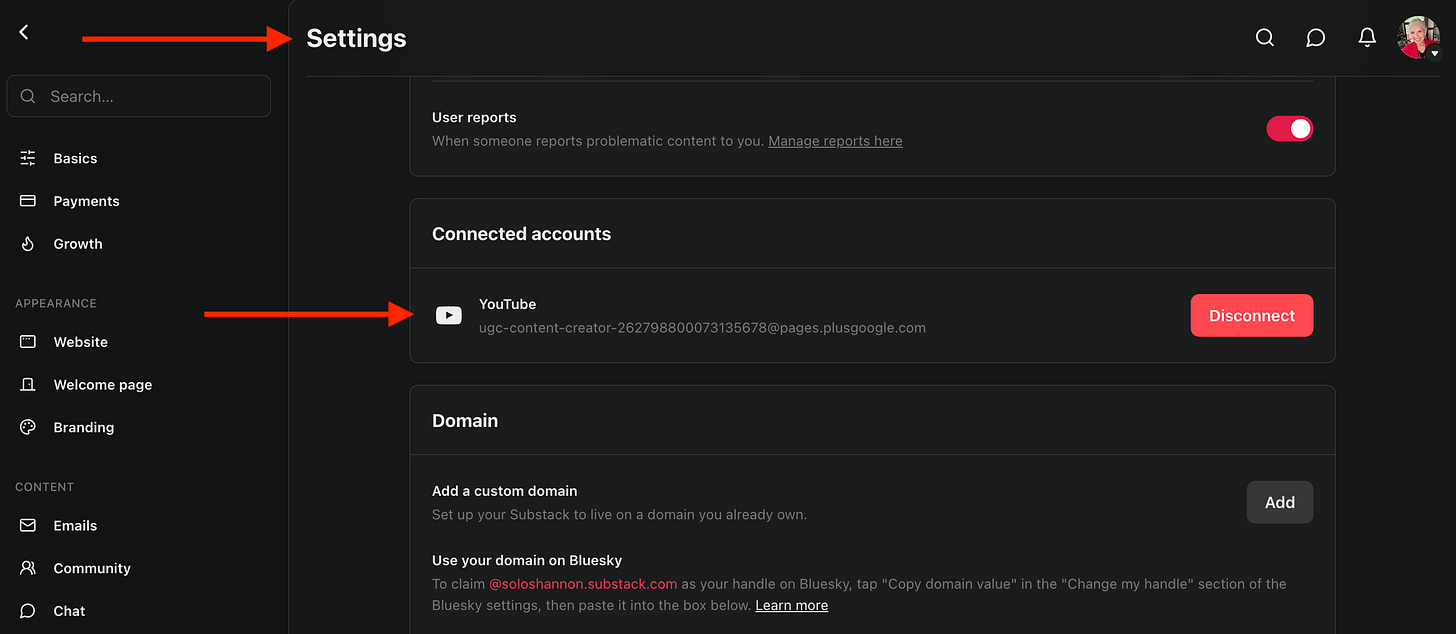 Here’s the part most people don’t know, Substack can auto-publish any video you upload to a connected YouTube channel.